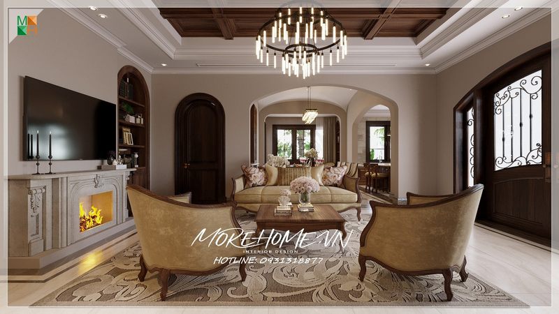 Mẫu thiết kế phòng khách biệt thự hiện đại giúp cho gia chủ có thể xác lập được vị thế của mình.